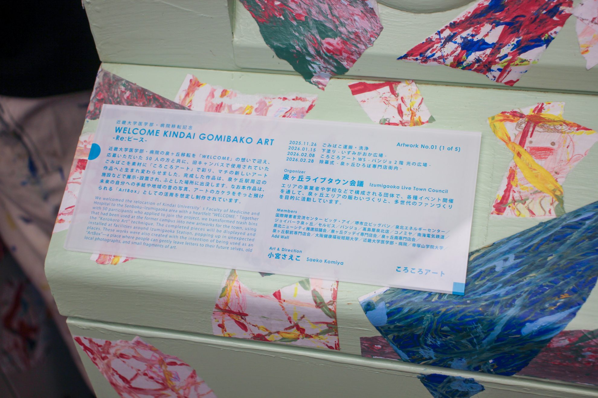 令和8年2月28日、ちびっこ広場横にて、泉ヶ丘ライブタウン会議の主催により「WELCOME KINDAI GOMIBAKO ART – Re:ピース –」の除幕式が開催されました。
