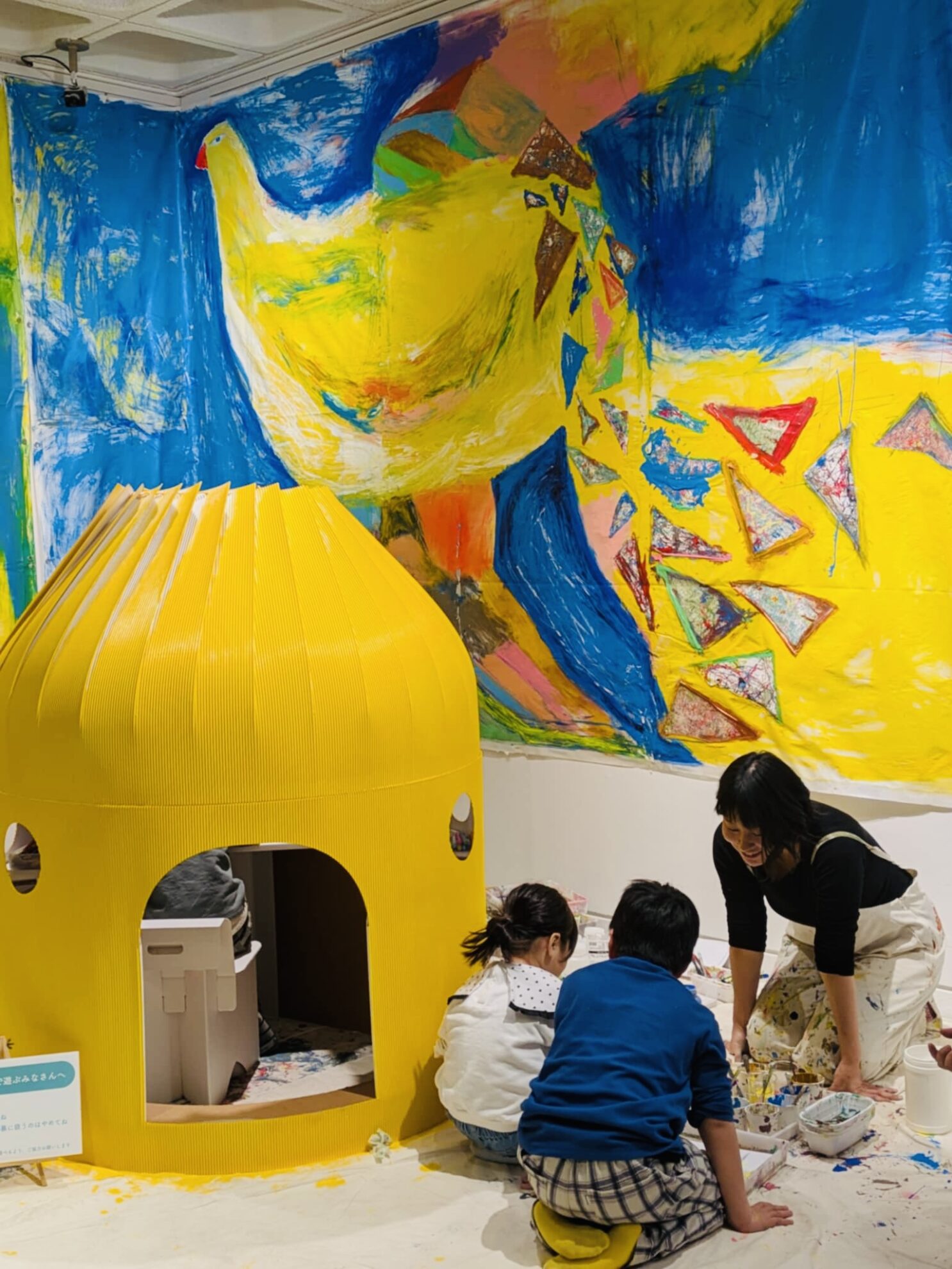 個展の作品は、会場の横にあるシェアアトリエで、目いっぱい色と戯れながら描くことができます。色を重ねるたび、昨日の自分を少し越えていく。静かな時間のなかで、心が動いた瞬間が、そのまま絵の一部になる。Add Wallが大切にしている「彩と感動」は、完成した作品の中だけでなく、こうした制作の道中にも宿るのだと、改めて感じています。今回の個展会場は、木々が生い茂る大蓮公園の中にあるART GALLERY——旧泉北すえむら資料館 展示棟。緑に包まれた空間で作品を眺め、施設を見学し、公園を散策する。そんな“ゆっくり味わう時間”ごと、展示として開いていました。会期中は、作品鑑賞だけでなく、いくつかの企画も同時開催。子どもも大人も一緒に遊べる紙あそび広場、ころころアートのワークショップ、カレーとのコラボフェア、そして夜の時間を大切にするNight Museum 。“見る”だけで終わらず、“場で交わり、体験して、持ち帰る”展示を目指した4日間でした。