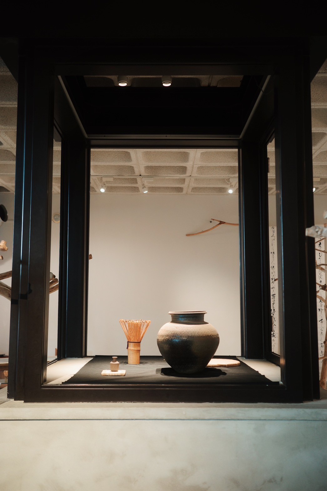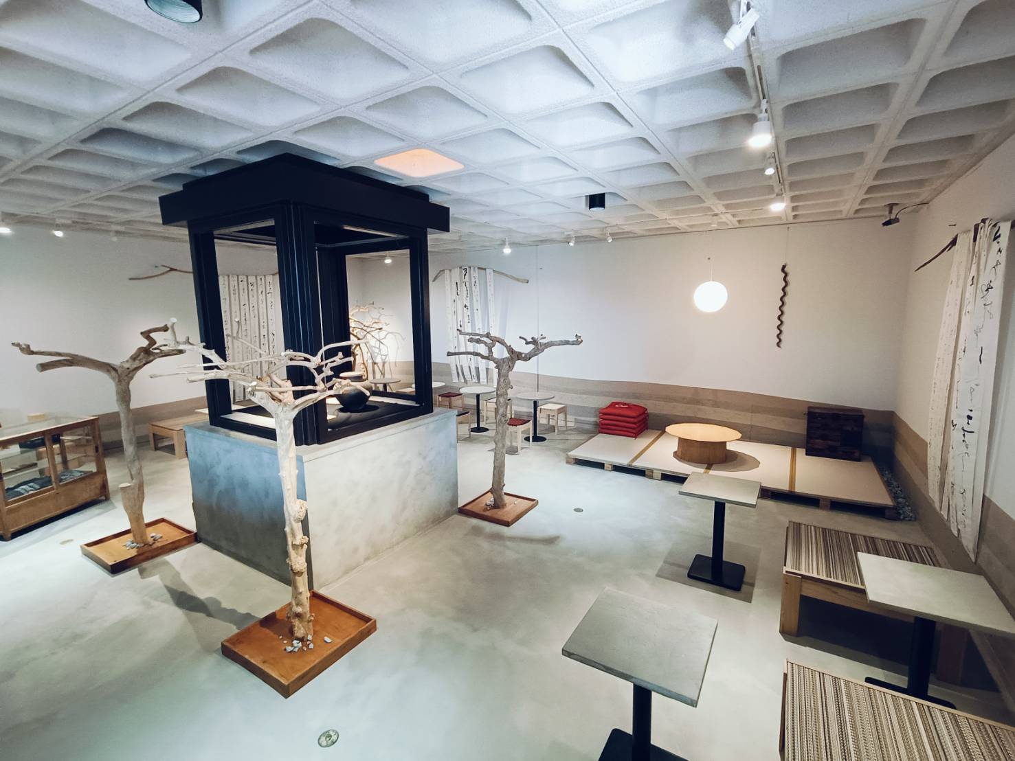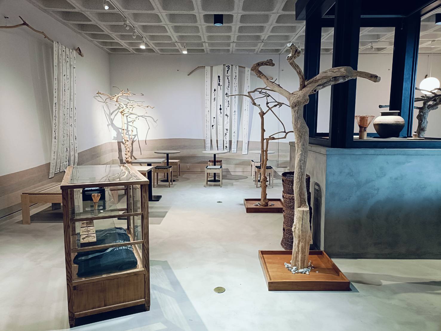 和カフェ「茶の音・堺」は、旧泉北すえむら資料館(展示棟)に生まれました。ここはかつて、古墳時代につくられていた最古の器ともいわれる須恵器(すえき)が展示されていた場所。土の文化を伝えてきた空間に、今度は“お茶”が響く時間をつくりたい——そんな想いから、準備が始まりました。メニューは、ドリンクもおやつも、できる範囲で原材料にこだわり、身体にも環境にもやさしい選択を心掛けています。無農薬米粉、抹茶、ココナッツシュガー、小豆に加え、有機無調整豆乳、有機メープルシロップ、平飼い卵など、日々の「おいしい」の奥にあるやさしさも、大切に積み重ねています。ドリンクメニューの一部は、千利休のふる里・堺創業の老舗「つぼ市製茶本舗」さんに監修いただき、お茶の香りや余韻、温度の違いまで丁寧に整えました。店内の塗装設計には、須恵器と同じ「泉州土」を原材料にした土の塗材「Habitatto - ハビタット -」を採用しています。過去から現代、現代から未来へ繋ぐ。積み重なる時を、地層で表現する。土がもつ粒子や陰影のゆらぎが空間に静けさをつくり、訪れる人の呼吸を少しだけ整えてくれます。この場所には、“いつか”を待っていた素材の時間も重なっています。遡ること2021年8月、space.SUEMURAのオープンにあたり設計したウッドデッキで使用した栗材。施工時の余剰分が倉庫に眠っていたその栗材が、スツールとして生まれ変わり、いま店内で活躍しています。時間も素材も、きれいにつながっていく感覚を大切にしています。器は、地域の皆さまに呼びかけてお譲りいただいた和食器を使わせていただきました。押入れや倉庫で眠っていた器たちが、いまはこの場所で日々の一皿として使われています。お譲りくださった皆さま、本当にありがとうございました。大切に使わせていただいています。また同じ館内にあるGreenSalon wgさんの商品も展示させていただき、栽培を終えた後に伐採され不要とされてしまう珈琲の木をディスプレイとして再活用しました。一本一本表情の違う木が並ぶことで、店内にはどこか流木ミュージアムのような佇まいが生まれています。プレオープン初日の1/29(水)は、2025年に入って最初の新月で、旧暦では旧正月、1年のはじまりにあたる日でした。そこから3/28(金)までをプレオープン期間とし、いただいたご意見・ご感想を受け取りながら、少しずつお店のかたちを整えてきました。旧泉北すえむら資料館も、前年8月から段階的にリニューアルが進み、いくつもの場が立ち上がった先に、茶の音・堺が加わり、3/29(土)には全館グランドオープンと記念イベント「堺陶邑(さかいすえむら)茶会」を迎えました。