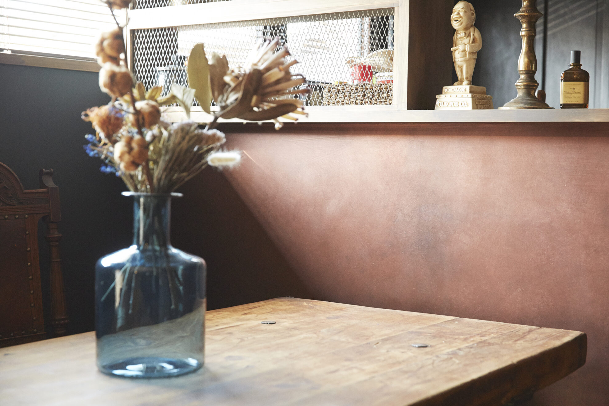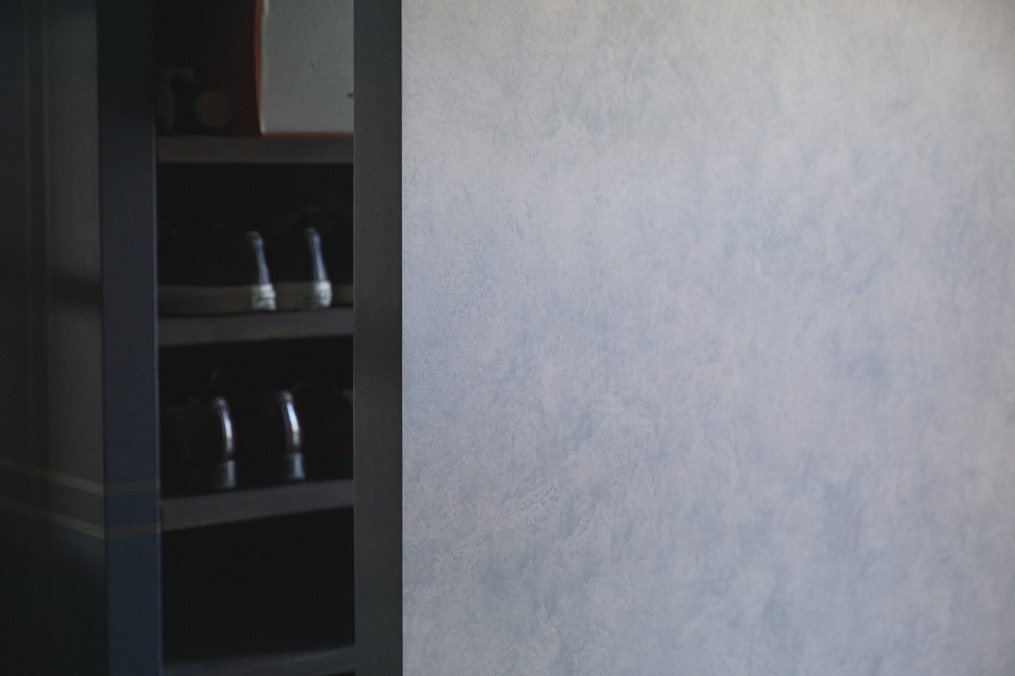 拘りの家具が活き、品のあるEGGSHELLを壁面に使用し、手仕事が見えるINTERNO LIME WASHや、経年変化していくLIQUID COPPERなど、他には決してない特別な空間になりました。