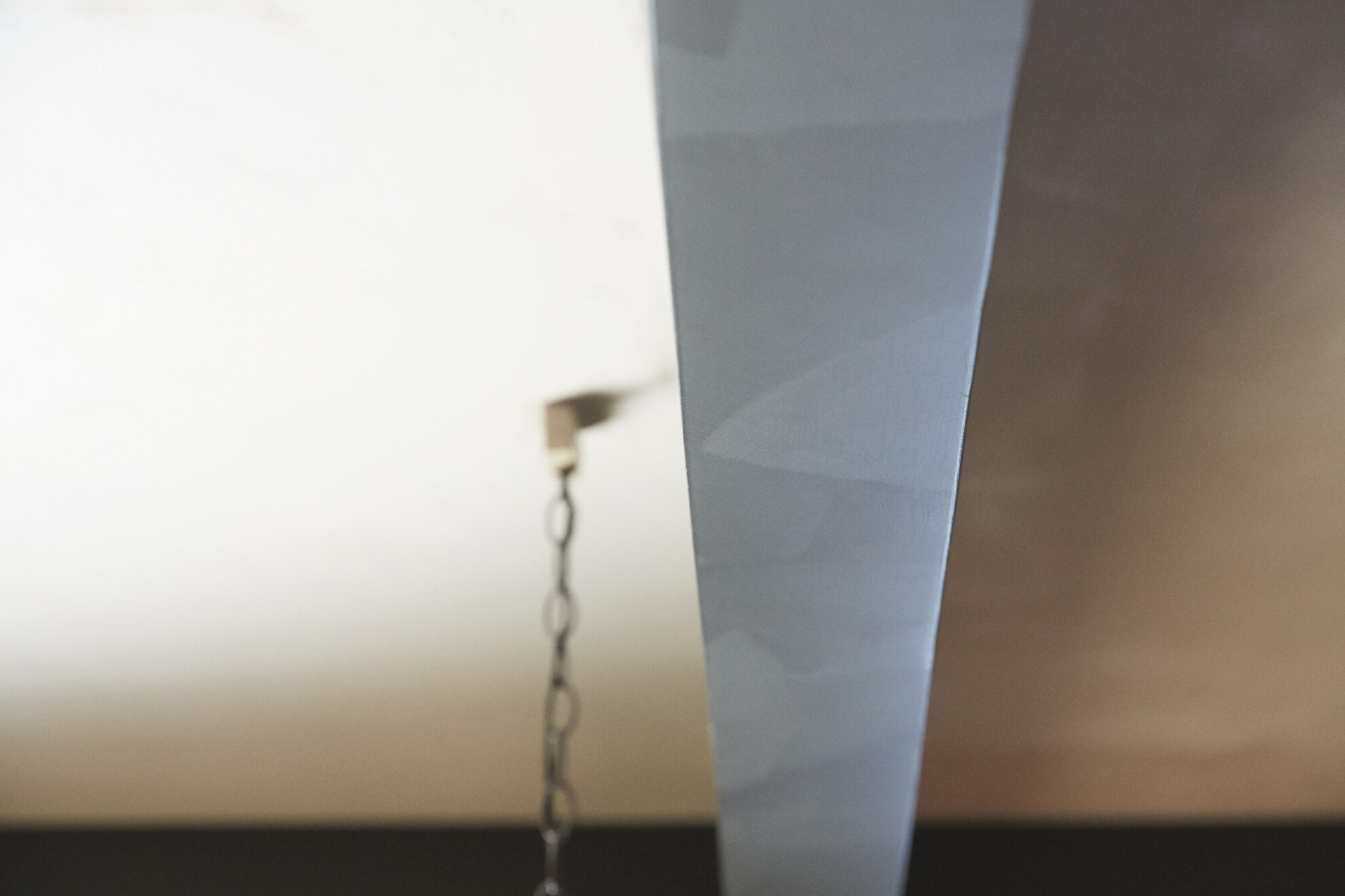 以前にお住いの家にもペイントされていたことがきっかけとなり、施主様のお好きな”ヴィンテージ”という要素が多く盛り込まれた室内へ、LDKの天井と壁、キッチン腰壁、玄関の独立壁とスペックいただきました。