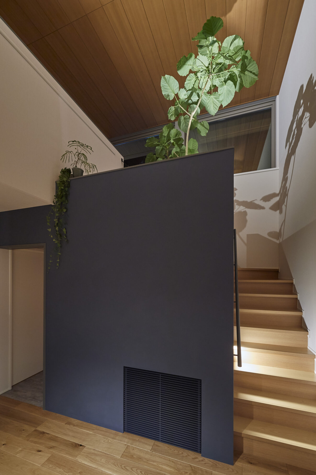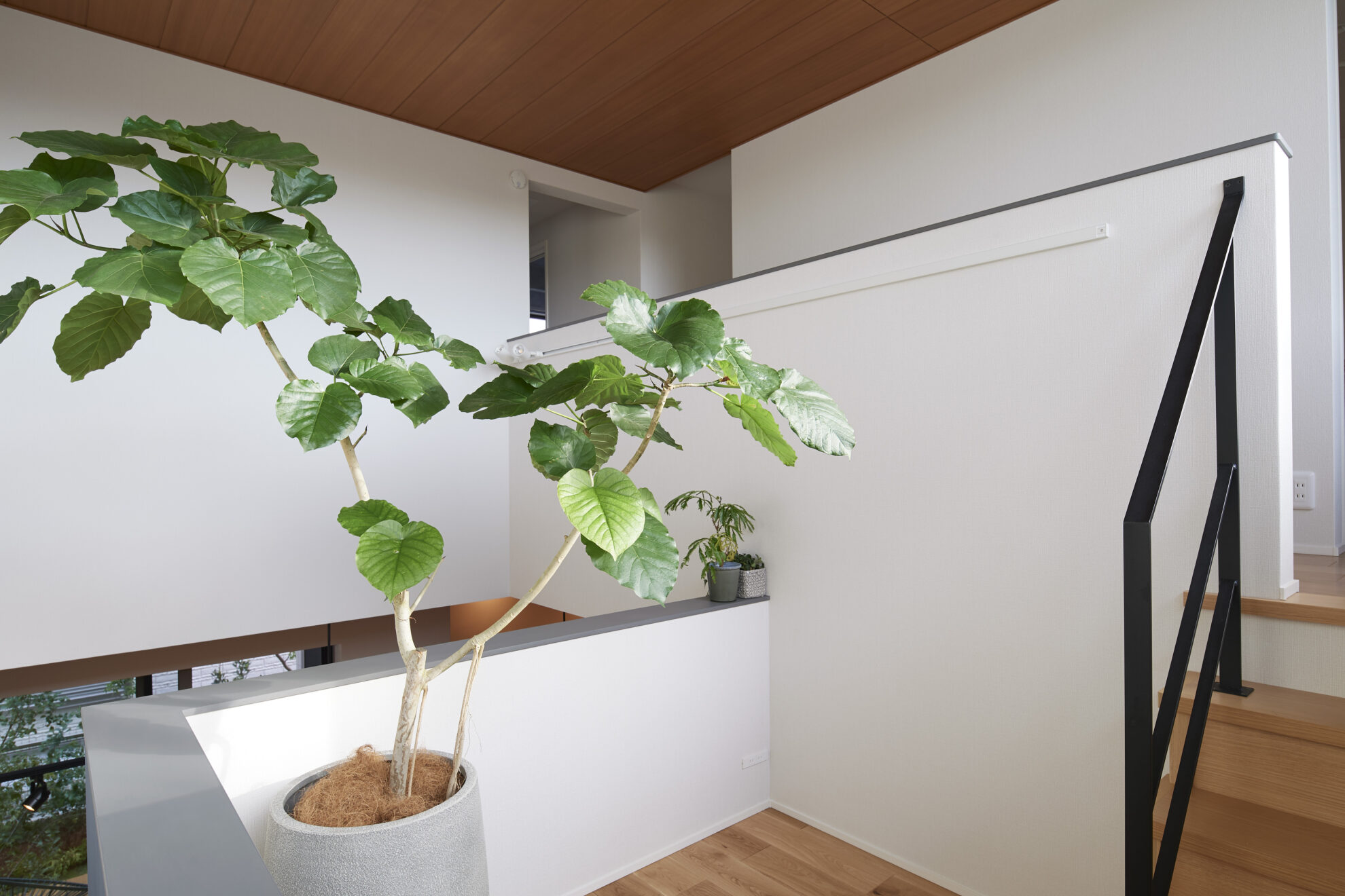 陽がよく入る個人邸へ、柔らかい陰影が特徴の階段壁”STONE PAINT FINE”。