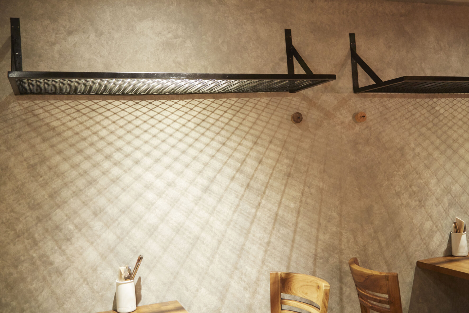 その店内改装の際に、やや暗めの店内でもテクスチャーと陰影が出るSTONE WASHを天井+壁面で使用いただきました。
