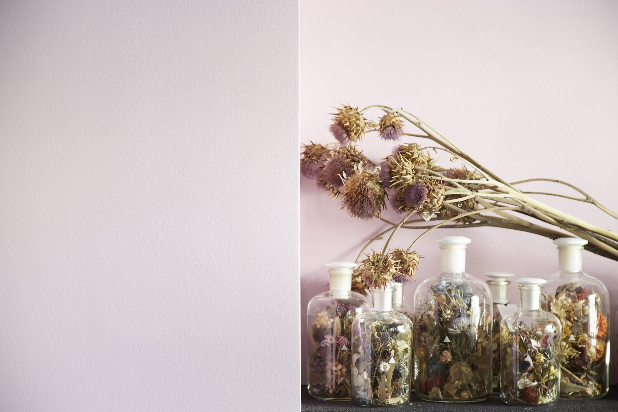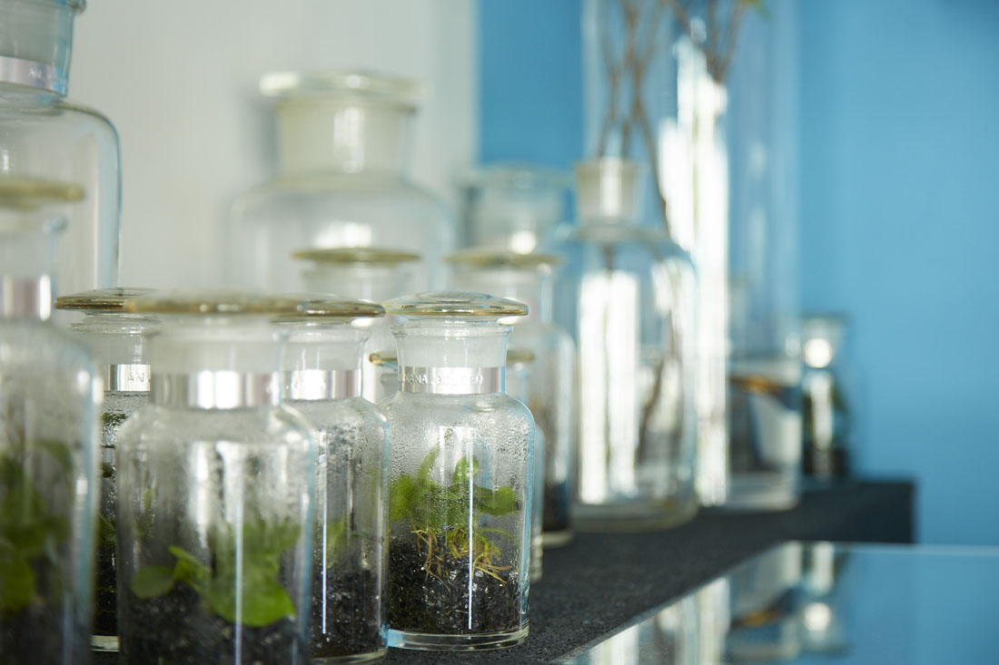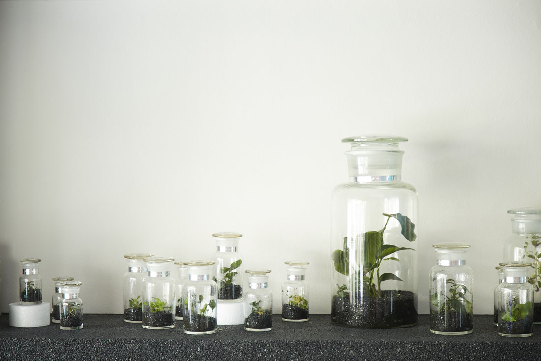 インテリアデザイナーの大工真司さんと造園家の井本由之さんが2013年にスタートさせた〈ボタニスト〉。「植物との生活に一歩踏み出すためのお手伝いができれば本望」と試行錯誤を重ね、室内に置いたままで育てられるガラス瓶入りの植物をプロデュース。