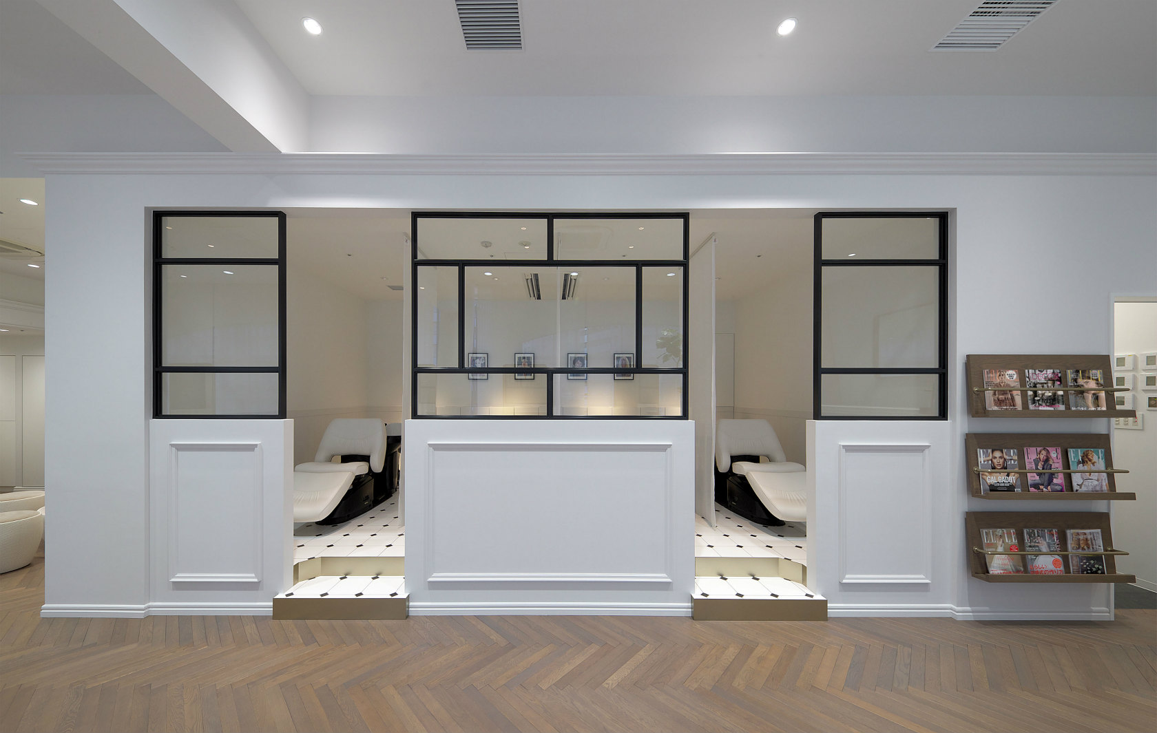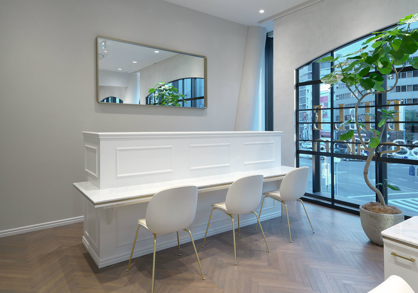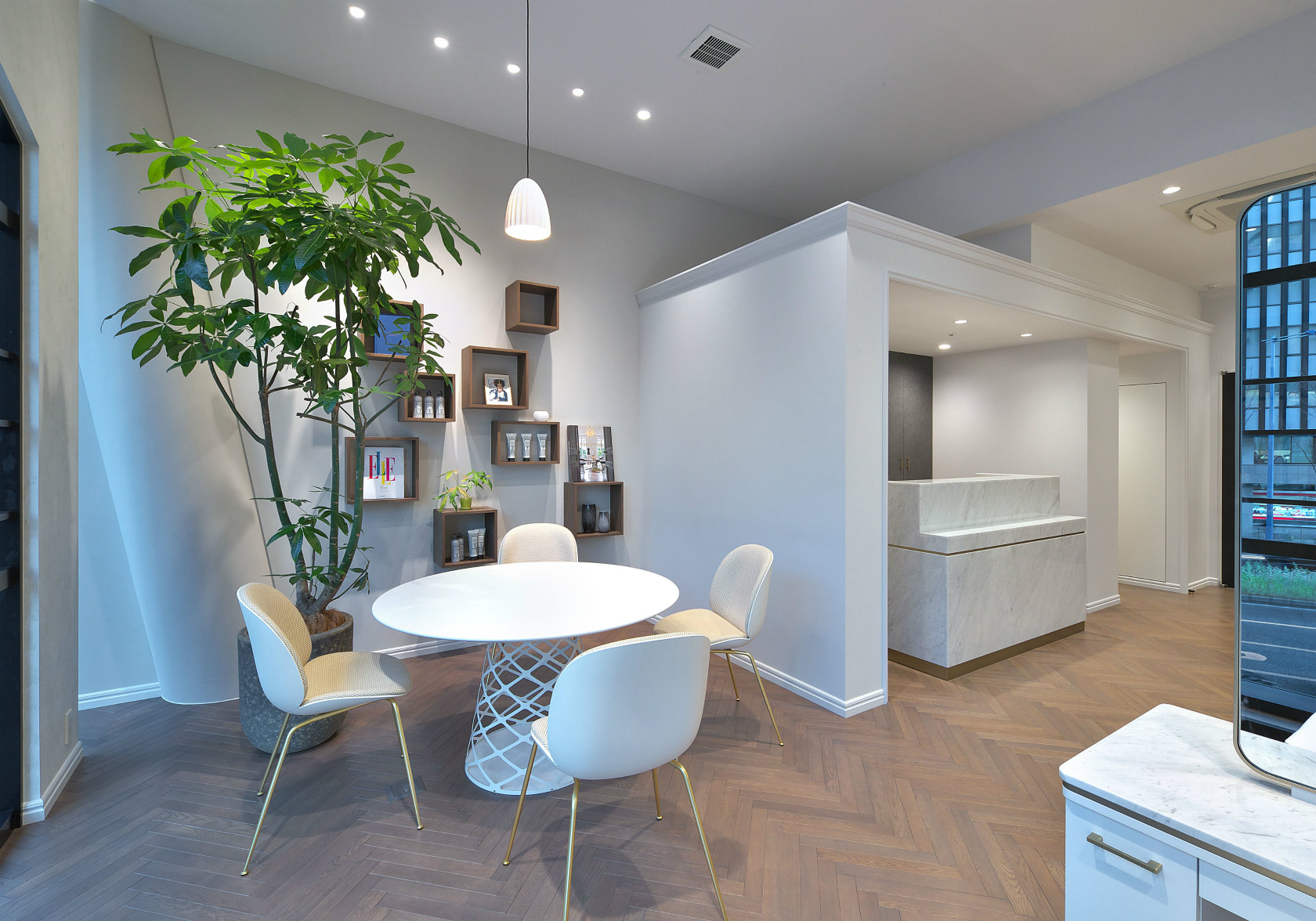 『ELLE salon (エル サロン)』は、フランス発祥ライフスタイルブランド「ELLE」の世界初の美容サロンです。そのサロンの左右両壁面へSTONE PAINT FINE、ファサードアーチへFRENCH WASHを使用いただきました。それぞれが白を基調とした空間にPORTER’S PAINTSの持つ陰影や濃淡が加わることで、空間の中に奥行きが出来、絶妙なアクセントとなっています。植物や無垢フローリングとの相性の良さも、PORTER’S PAINTS独自のカラーならではです。